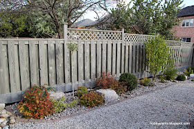 ripped out the old silverleaf dogwood and a hosta that wasn't doing so well. planted a euonymous on a standard and a japanese pieris in it's place. looks much cleaner now. great fall colours on the spireas.